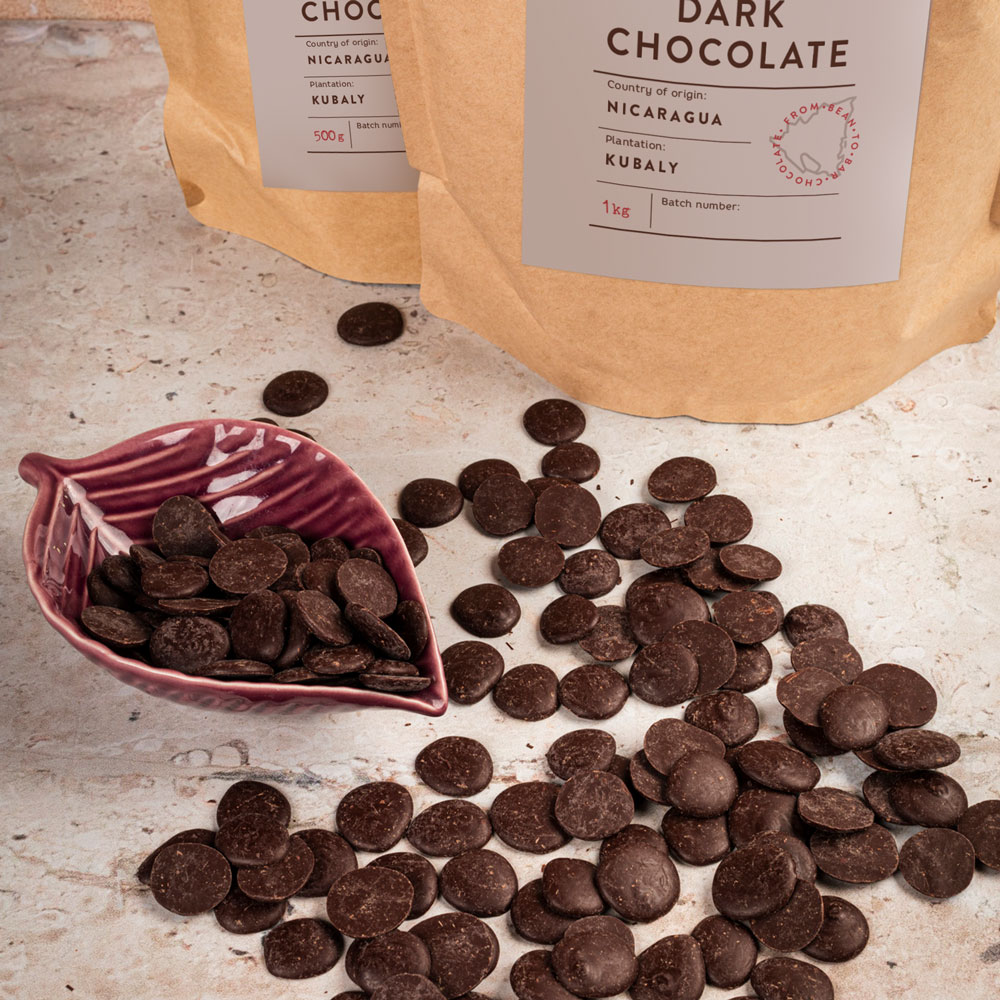 What makes our Nicaragua 70% chocolate truly special is its unique form – available in convenient drops, also known as pastilles. These drops are easy to measure and melt, making them perfect for all your baking, dessert, and drink preparations. Whether you’re making a decadent dessert or a luxurious hot chocolate, these drops will melt effortlessly to create a smooth, rich experience. The packaging comes in a resealable „doypack” format, ensuring freshness for longer and making storage easy and safe in your kitchen.